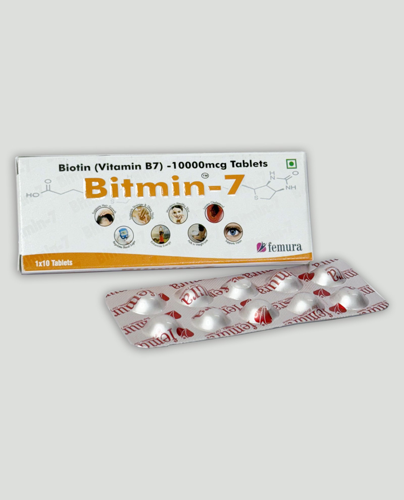 - You can find Biotin 10,000ug with Bitmin 7 ™ Vegan Tablets that are free from gluten, lactose, and artificial flavour.